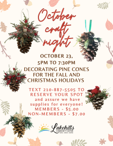 Be sure to RSVP 210/887-5505 to assure sufficient supplies!